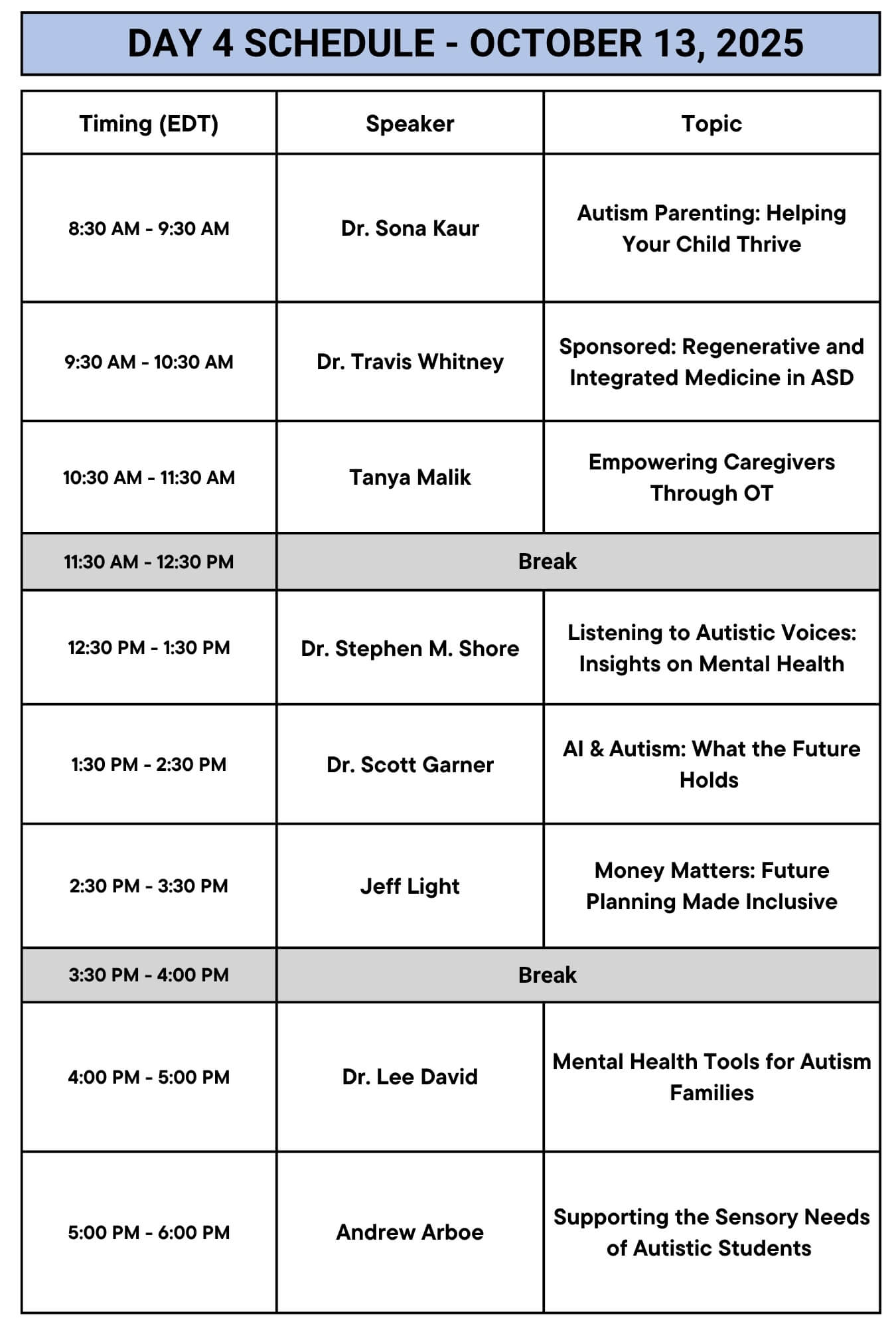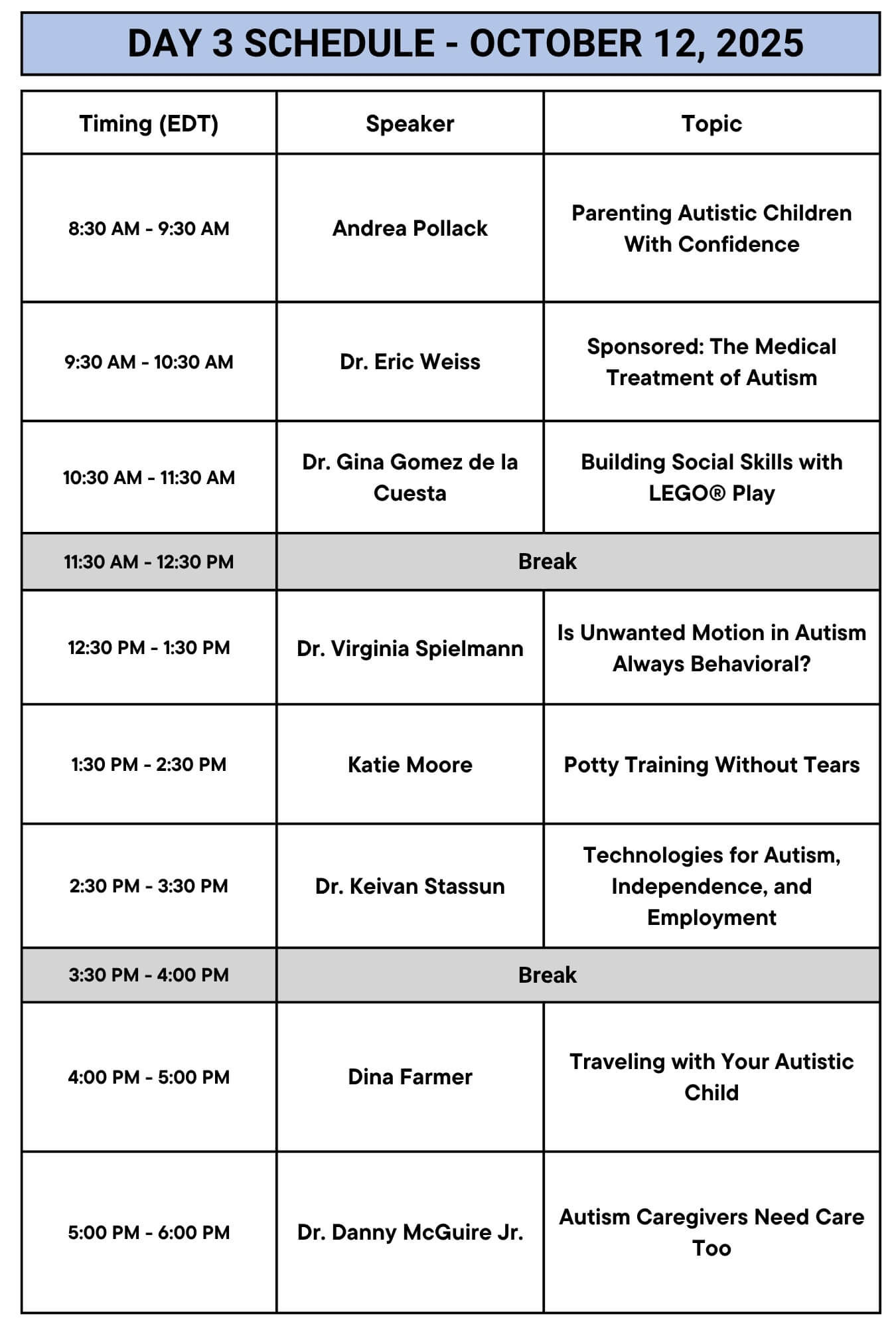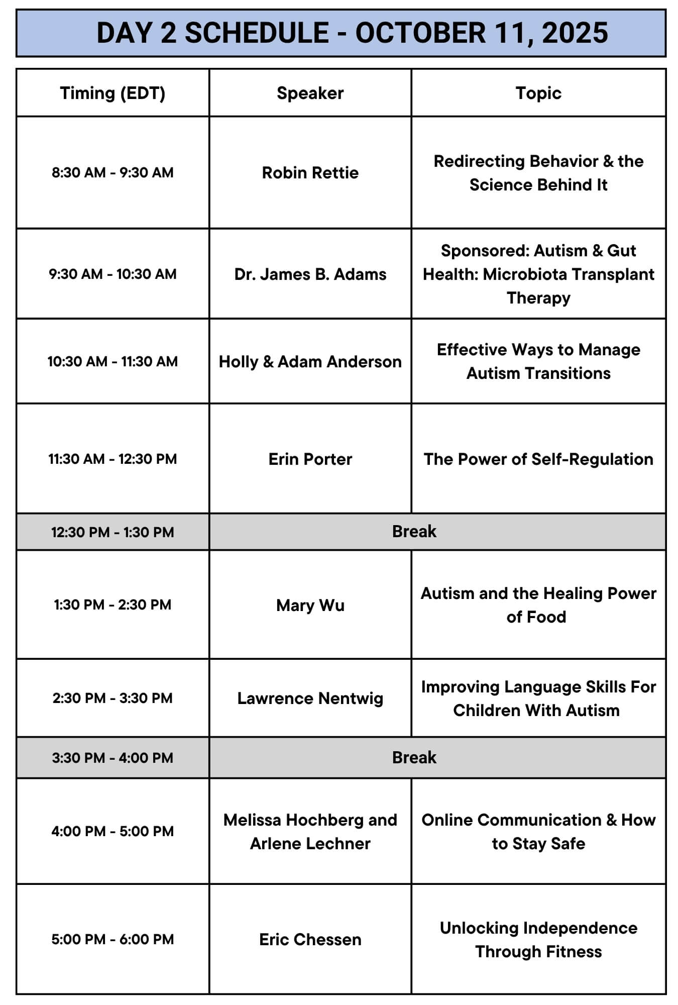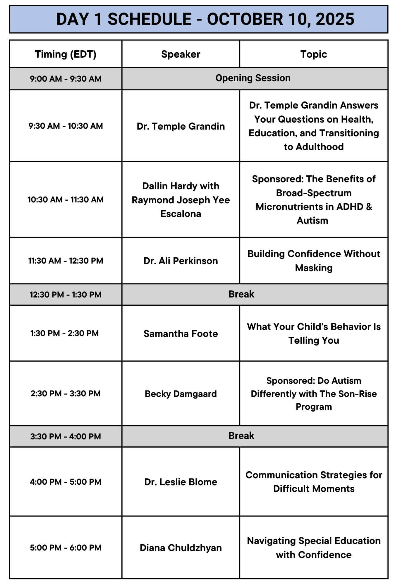 AUTISM PARENTING SUMMIT SCHEDULE